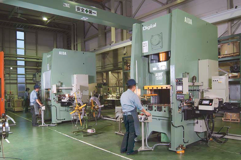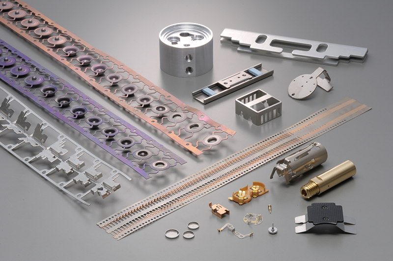 お客様の要望にお応えしています。プレス部品では、精密小物部品(抜き製品、曲げ製品)からカーリング加工によるパイプ製作も行っています。