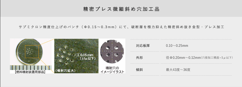 従来、 穴加工は放電で行っておりましたが、プレス加工を可能することでコストの低減と、品質 の安定が図れるようになりました。